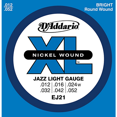 D’ADDARIO ELECTRIC GUITAR STRING SET, XL JAZZ LIGHT 12-52 NICKEL ROUND WOUND, WITH WOUND 3RD/G STRING