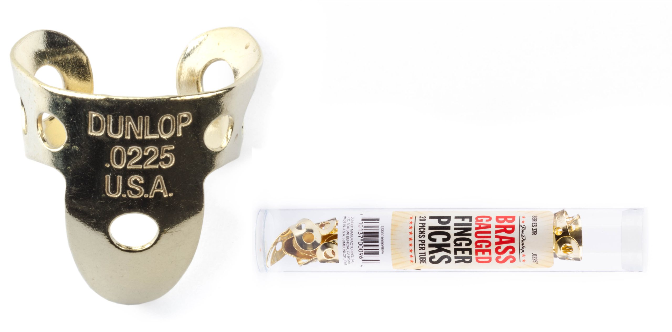 DUNLOP BRASS FINGERPICKS, TUBE OF 20 PICKS, .0225 GAUGE