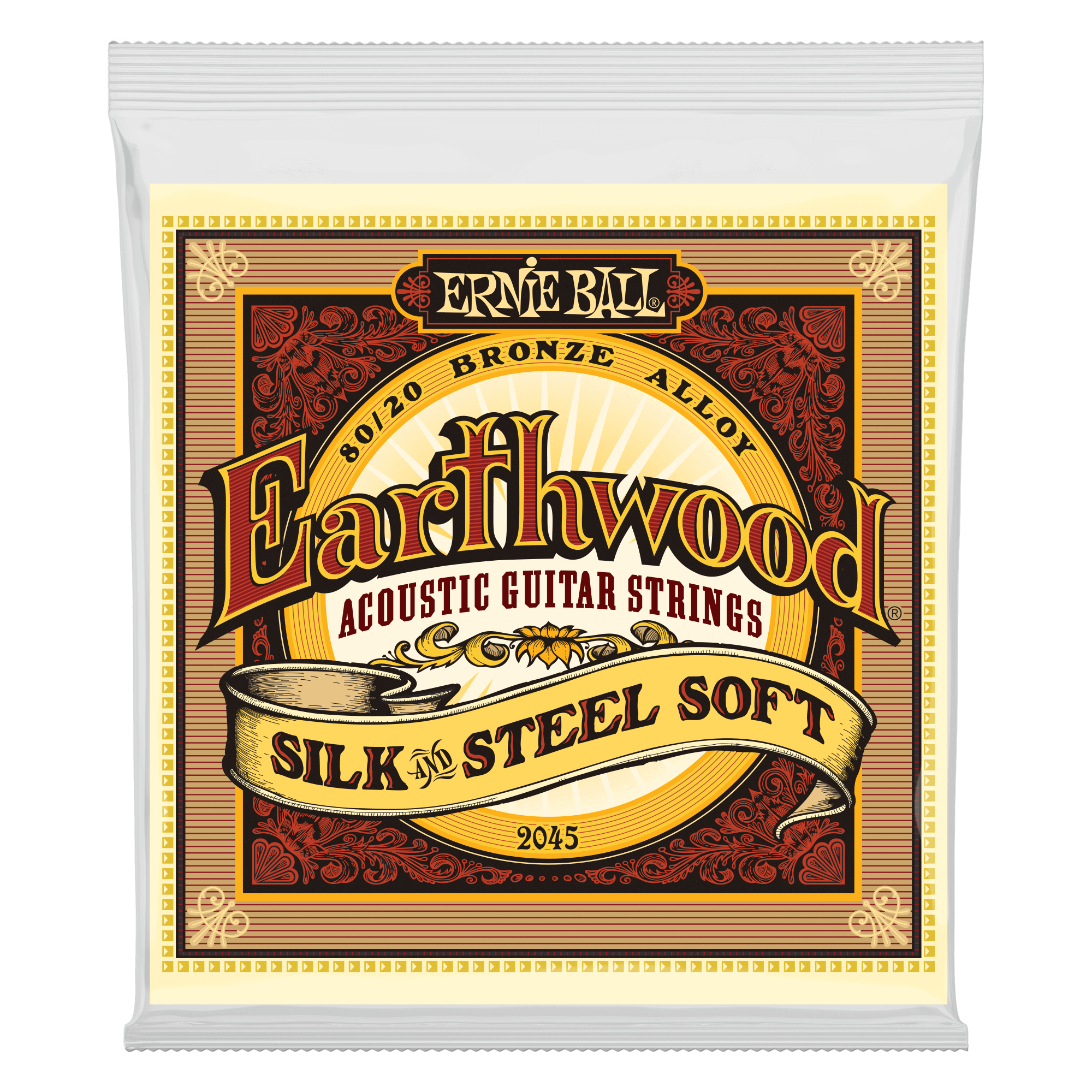Ernie Ball Earthwood Silk & Steel Soft 80/20 Bronze acoustic guitar strings are made with an 80/20 bronze alloy wrap, along with a layer of silk between the wrap and steel core. The silk produces a more mellow sound and makes the string feel more comfortable while reducing finger noise. Gauges .011, .015, .022w, .030, .042, .052