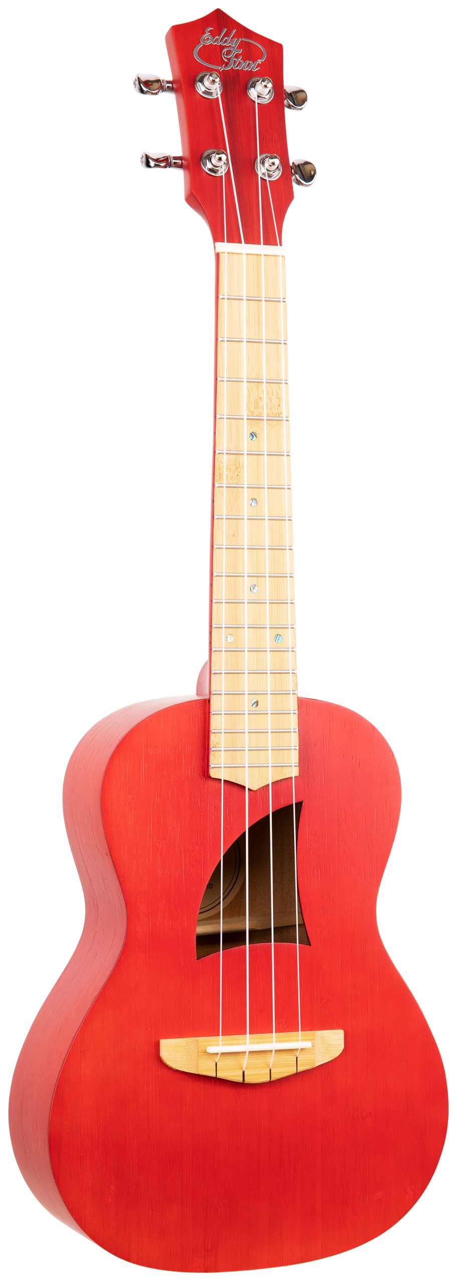 EDDY FINN BAMBOO BEACH UKULELE WITH GIG BAG, TRANSPARENT RED BAMBOO TOP/BACK/SIDES, FINGERBOARD, & BRIDGE