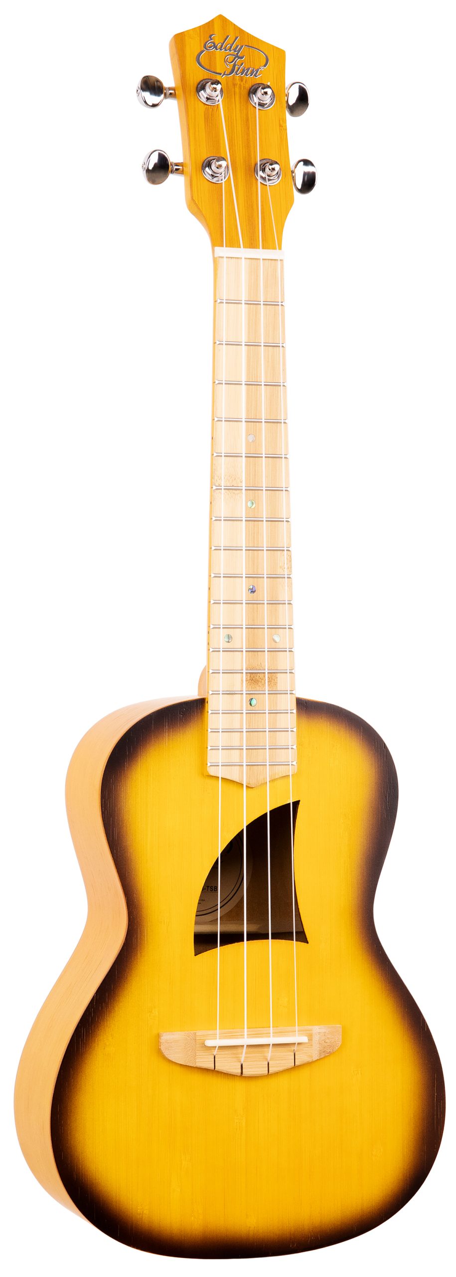 EDDY FINN BAMBOO BEACH UKULELE WITH GIG BAG, TRANSPARENT SUNBURST BAMBOO TOP/BACK/SIDES, FINGERBOARD, & BRIDGE