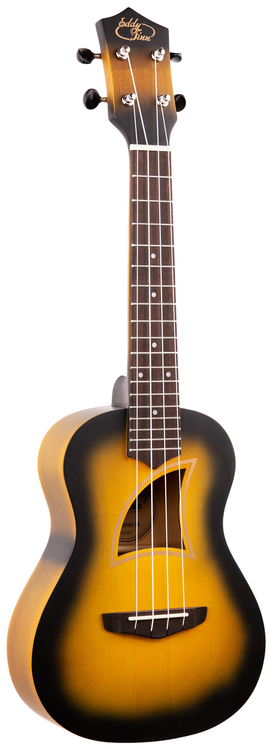 EDDY FINN COLOR BURST UKULELE WITH GIG BAG, YELLOW BURST LINDEN WOOD TOP/BACK/SIDES, NATO NECK, TECHWOOD FINGERBOARD