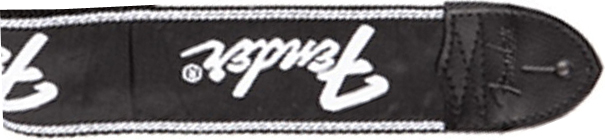 FENDER 1-7/8″ RUNNING LOGO WOVEN GUITAR STRAP, BLACK WITH WHITE LOGO