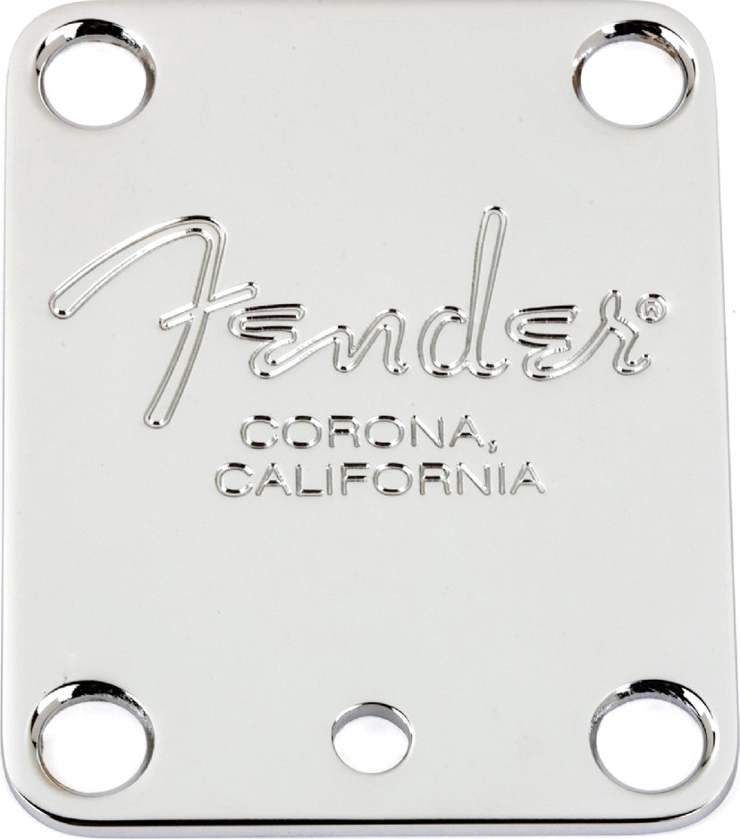 FENDER AMERICAN STANDARD GUITAR NECK PLATE, 4-BOLT, WITH “FENDER CORONA” STAMP, CHROME