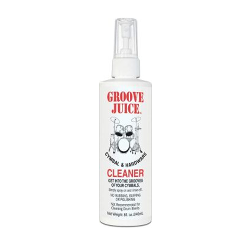 Groove Juice Cymbal Cleaner is the original spray on rinse off cymbal cleaner an easy to use no mess cymbal cleaner. Simply spray the product on the cymbal surface and wipe with a soft cloth or paper towel along the tonal grooves making sure cleaner is distributed evenly and leave on for approximately 30 seconds. Then rinse with warm water to remove all residue of the cleaner and towel dry the cymbal completely to remove all moisture.