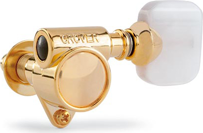 GROVER ORIGINAL ROTOMATIC TUNERS WITH PEARLOID BUTTON, ACE FREHLEY STYLE, SET OF 6, GOLD