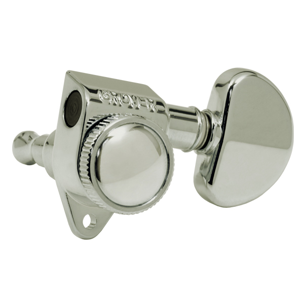Roto-Grip Locking Rotomatics ® utilize the famous 18:1 Rotomatic ® design with a thumb screw mechanism which locks the string into place. Insert the string through the post hole, wrap around once, then lock by tightening with the thumb screw. Perfect replacement for the most standard machine heads. Includes all mounting hardware.