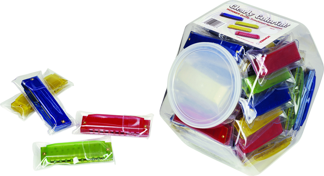 HOHNER COUNTER DISPLAY JAR: COLORFUL HARMONICAS Jar of 48, Key of C