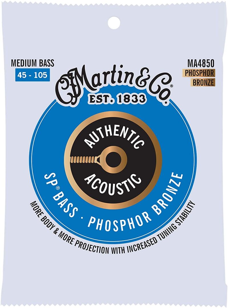 Martin Authentic Acoustic Bass Guitar Strings provide unrivaled quality, craftsmanship, and tone for your acoustic bass guitar. Designed to produce true, consistent tone, these medium-gauge bass strings provide excellent tuning stability and playability so your instrument can stand up to your rigorous practice and performance schedulewhether you’re practicing a scale or laying down a tight groove. Made from 92/8 phosphor bronze, these strings feature Martin’s highest-quality wrap wire for enhanced longevity and durability. They are naturally corrosion resistant, so they will hold up after hours and hours of playing. This pack of professional-grade bass guitar strings will last through long jam sessions, late-night campfire songs, and plenty of picking.To make these strings extra-durable and stable, we start with our highest-tensile-strength core wire and then tin-plate it on all 4 strings for added corrosion resistance. When the core is coupled with our highest-quality wrap wire, you get a consistent tone that you can count on song after song. Designed to bring out your instrument’s true tone, these phosphor bronze strings can be used for finger-style blues, jazz, country, bluegrass, ragtime, and many more styles. With this pack, you’ll receive 4 medium-gauge bass strings. The low E string measures 0.105″, the A string measures 0.085″, the D string measures 0.065″, and the high G string measures 0.045″. This total set of medium-gauge strings features a tension of 203.2, and they make it easy to get a rich, bright tone out of your bass guitar. Martin Guitar has been producing high-quality, musician-choice guitars and guitar accessories since 1833. The Martin Authentic Acoustic Medium-Gauge Bass Strings are the real dealnot an imitation. Discover your bass’s true voice with this professional-grade string pack.