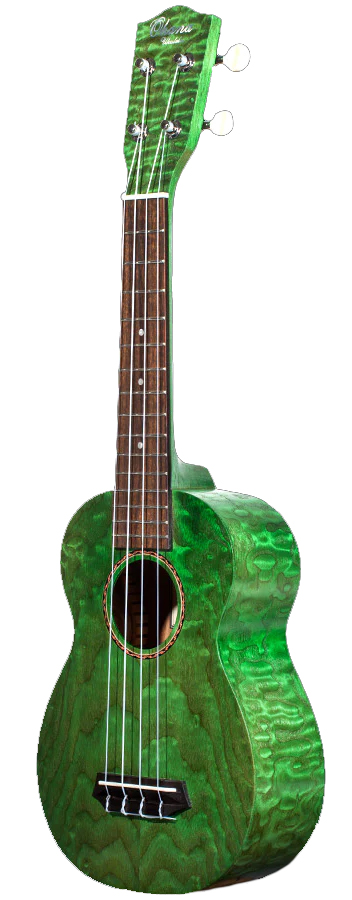 OHANA SOPRANO UKULELE, WILLOW WOOD TOP/BACK/SIDES, GREEN SATIN FINISH, GEARED TUNERS
