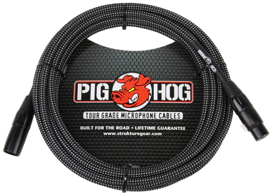 Pig Hog Black & White Woven Mic Cable, 20ft XLR