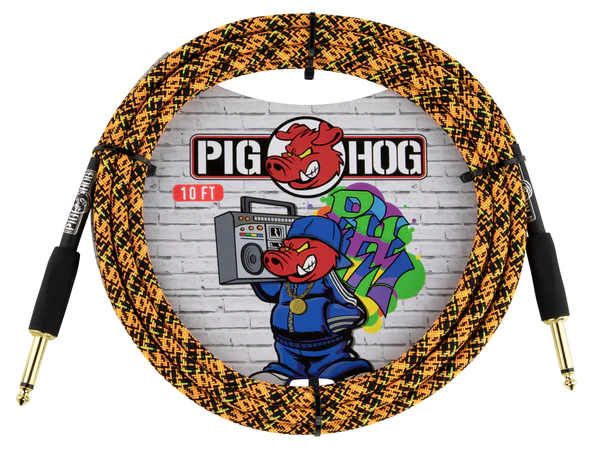 PIG HOG INSTRUMENT CABLE, 10FT STRAIGHT, ORANGE GRAFFITI