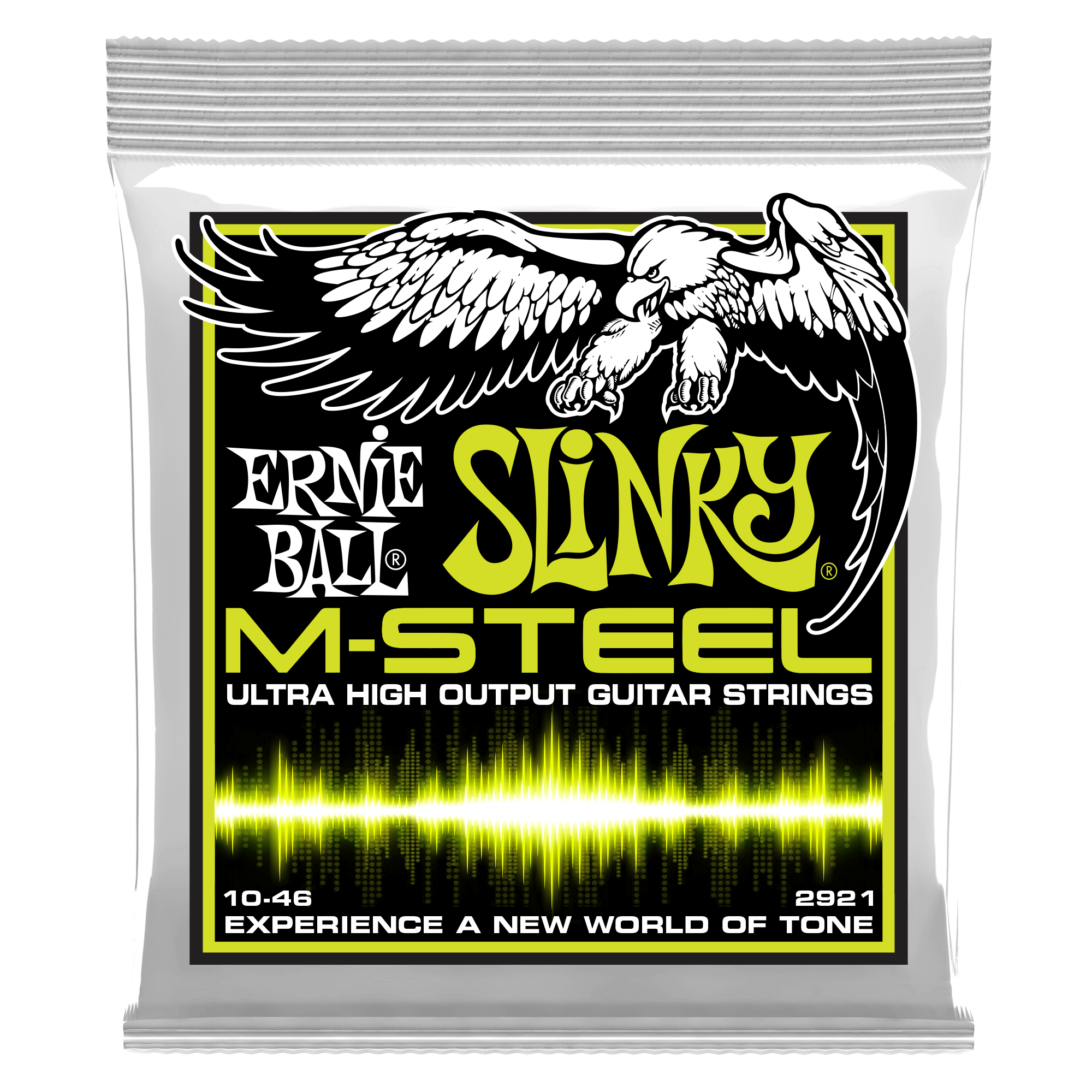 Ernie Ball M-Steel Electric Guitar Strings are made of a patented Super Cobalt alloy wrapped around a Maraging steel hex core wire, producing a richer and fuller tone with a powerful low-end response. M-Steel plain electric guitar strings are comprised of a specially tempered steel for maximum fatigue resistance. The electric plain strings also utilize a patented winding of steel around the ball end that reduces slippage, breakage and stays in tune better than conventional plain strings. Gauges .010, .013, .017, .026, .036, .046